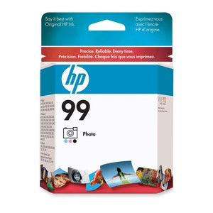 | Marketing Information | HP\'s Vivera inks deliver fast results and superior fade-resistance while using less ink. Make your memories last with photos that resist fading for generations. Save time with the simple installation. HP 99 is designed for use with HP Deskjet 460c, 460CB, 460WBT, 460WF, 5740/XI, 6420/XI, 6540/DTXI, 6830V, 6840/DT/XI and 9800D; Officejet 6200, 6210/V/XI, 7210/V/XI, 7310/XI, 7410XI; Photosmart 2610/V/XI, 2710/XI, 7850, 8150/V/XI, 8450/XI; PSC 1507, 1510/V/XI, 1600, 1610/V/XI, 2350 and 2355/V/XI. Yields 130 4" x 6" color photos. |