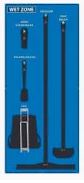 Shadow Board - 30" x 68" made from 1/4"/6mm thick Aluminum Composite Material (ACM) with a durable print finish and includes hanger hardware that is easily installed by the user. Includes signage for: Mop, Mop Bucket 17" Diameter, Dust Pan, Wet Floor Sign, Squeegee, Counter Brush, Cleaning Station Checklist.