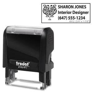 Do-It-Yourself Self-Inking Stamps offer a fast, easy way to create your own custom self-inking stamp with free online access. Simply enter the control number found in your package. Follow the steps to create your custom stamp with your choice of wording in 1/8" (3mm) size letters. The 4912 includes up to four lines with 21 characters. Your custom-made rubber plate ships to you in just one or two business days. Small, lightweight design allows easy impression positioning and consistent use. Self-inking design lets you quickly create clear, crisp impressions in blue ink. Water-based ink formula is nontoxic for safe handling and use. Environmentally friendly construction is made with post-consumer material to help minimize its global impact.