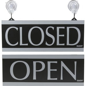 Century Series Sign reads "OPEN" on one side and "CLOSED" on the other side. Both words are in silver with a black background for easy visibility. Sign includes suction cups. |