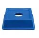 Blue Square Bottle/Can Recycle Lid. Dimensions: 20-1/2"L x 20-1/2"D x 6-1/4"H Blue Paper Recycle Lid . 35 Gal Square Container sold separately. Colour: Blue.